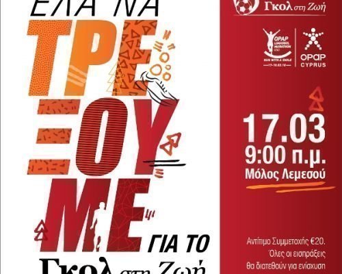 Το Γκολ στη Ζωή τρέχει στον ΟΠΑΠ Μαραθώνιο Λεμεσού ΓΣΟ. Έλα να τρέξουμε ή να περπατήσουμε μαζί 5χλμ, το Σάββατο, 17 Μαρτίου...