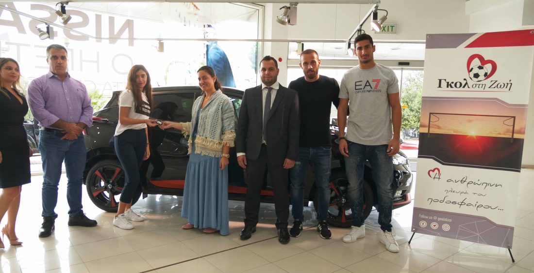 Όλα τα έσοδα από την πώληση του λαχνού ενισχύουν την προσπάθεια του «Γκολ στη Ζωή» για την ανέγερση πτέρυγας που θα στεγάσει το ΤΑΕΠ του Μακάρειου Νοσοκομείου Το νέο της αυτοκίνητο, ένα ολοκαίνουργιο New Nissan Micra αξίας €10.900 προσφορά του Ομίλου Πηλακούτα, παρέλαβε την Πέμπτη (25/10) η Κωνσταντίνα Λατούρου, η οποία ήταν η τυχερή της κλήρωσης του λαχνού του Εθελοντικού – Φιλανθρωπικού Οργανισμού των ποδοσφαιριστών «Γκολ στη Ζωή». Η Κωνσταντίνα παρέλαβε το αυτοκίνητο από την κα Κλέλια και τον κ. Κόδρο...