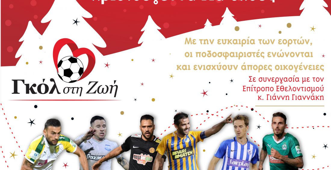 Mε την ευκαιρία των Χριστουγέννων οι ποδοσφαιριστές – μέλη του «Γκολ στη Ζωή» ενώνονται και ενισχύουν άπορες οικογένειες, σε μια αξιέπαινη κίνηση που αναδεικνύει το κοινωνικό πρόσωπο του ποδοσφαίρου. Συγκεκριμένα, στ’ αποδυτήρια οι ποδοσφαιριστές, θα μαζέψουν χρήματα τα οποία θα παραδώσουν μετά την Πρωτοχρονιά στον Επίτροπο Εθελοντισμού και Μη Κυβερνητικών Οργανώσεων κ. Γιάννη Γιαννάκη, ο οποίος θα αναλάβει να τα δώσει σε άπορες οικογένειες. Την πρωτοβουλία έχουν πάρει οι ποδοσφαιριστές Νούνο Μοράις, Ματ Ντάρμπισαϊρ, Ρούμπεν Ράγιος, Άλεξ Ντα Σίλβα, Αντρέ Σκέμπρι και...