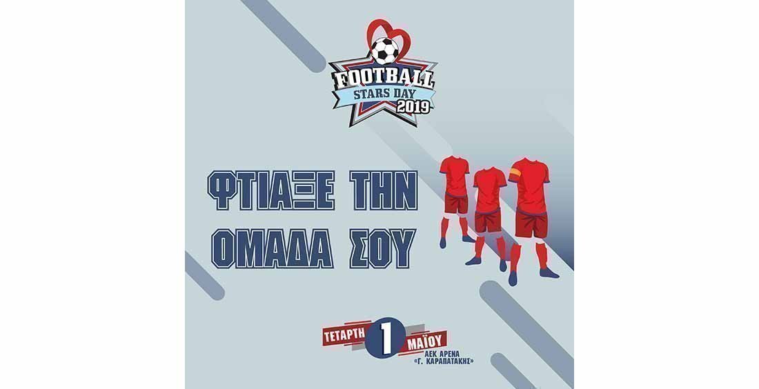 Ο Εθελοντικός – Φιλανθρωπικός Οργανισμός των ποδοσφαιριστών «Γκολ στη Ζωή» και η Κυπριακή Ομοσπονδία Ποδοσφαίρου, διοργανώνουν και φέτος την Football Stars Day, την απόλυτη γιορτή του ποδοσφαίρου. Η διοργάνωση θα γίνει την 1η Μαΐου 2019 στην ΑΕΚ Αρένα – «Γεώργιος Καραπατάκης». Αποκορύφωμα της εκδήλωσης θα είναι ο αγώνας των Επίλεκτων Κύπριων εναντίον των Ξένων του Πρωταθλήματος Cyta.